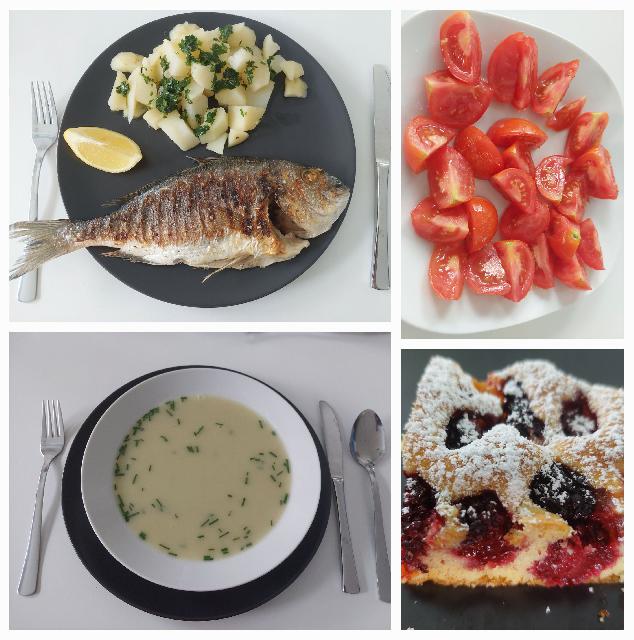 Sobota: brancin iz pečice,pečen krompir in bučke, kumare v solati