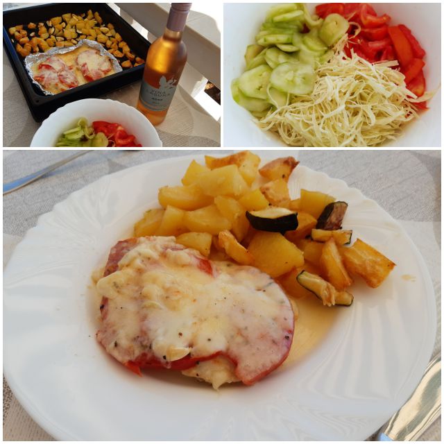 V petek v najlepši jedilnici zrezki s sirom in paradižnikom, pečen krompir, solata, vino