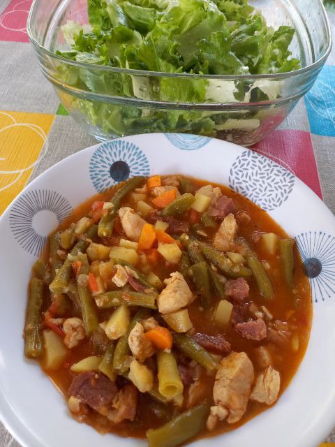 Nedelja: špinačna juha, pirine testenine z bučkami in piščancem, stročji fižol v solati, kava
