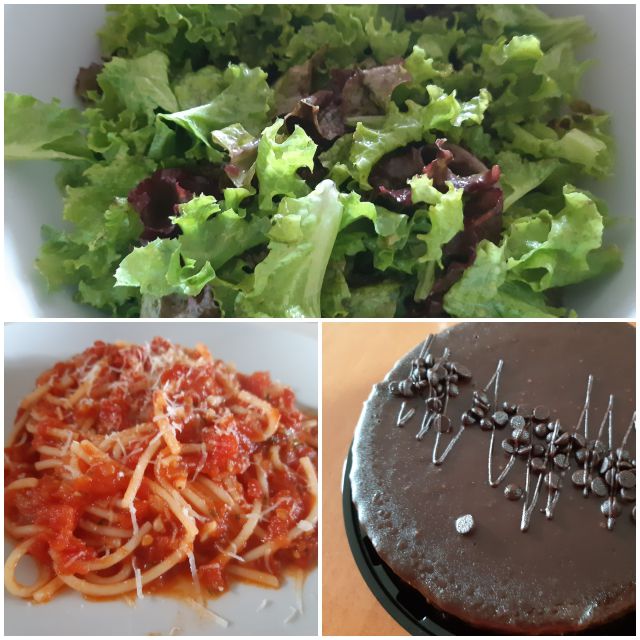 V ponedeljek špageti s paradižnikovo omako, solata, čokoladna tortica![]()