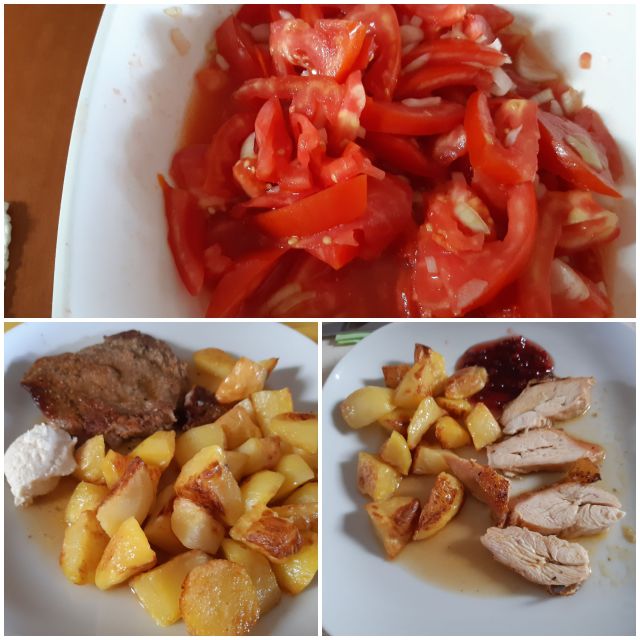 Danes pečene piščančje prsi, teletina, pečen krompir, paradižnikova solata