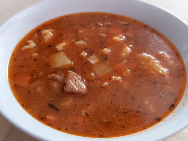 Golaž, testenine,solata