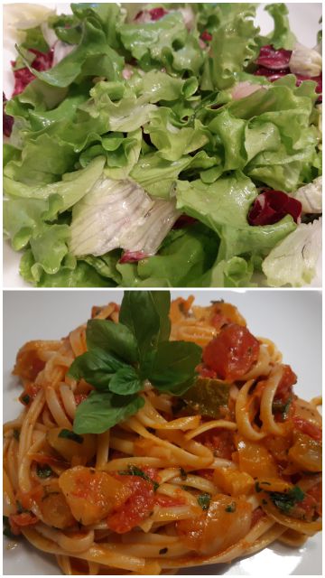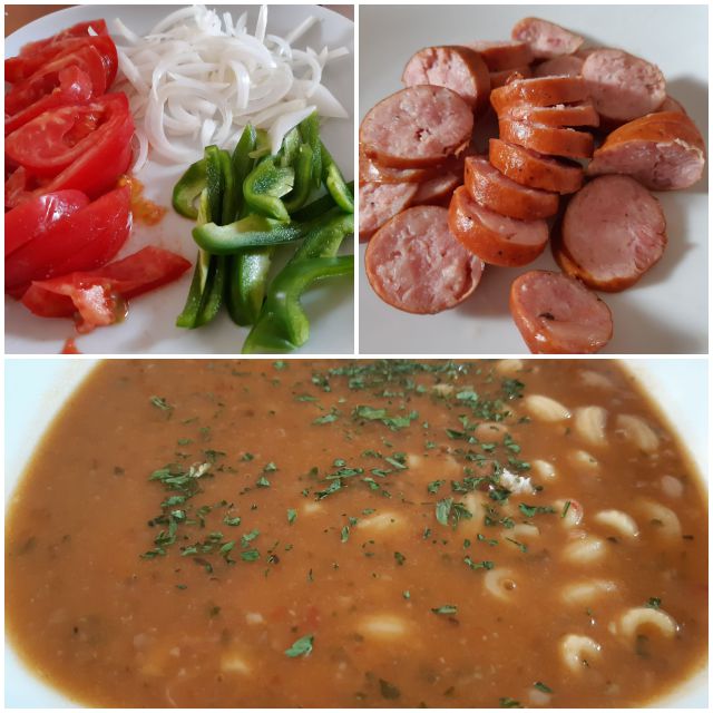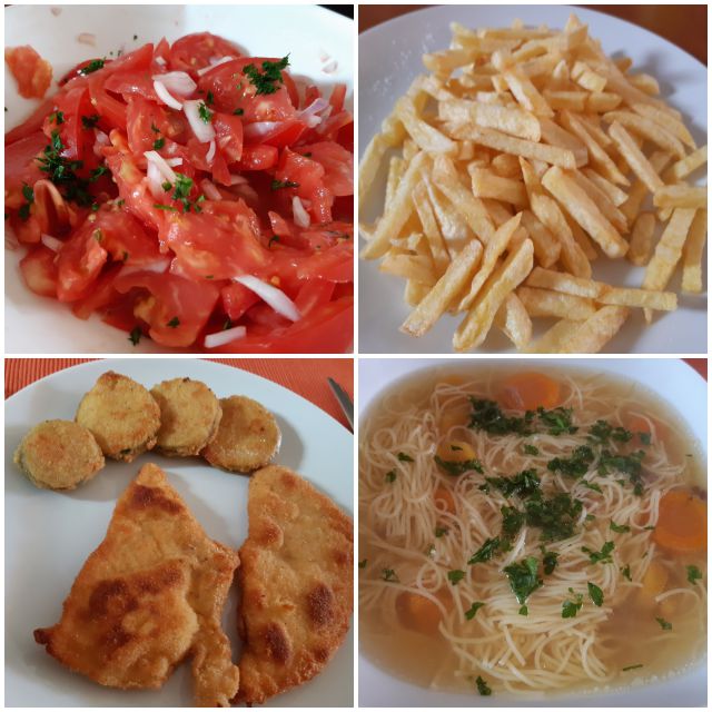 Danes pohod v hrib in pozno kosilo- goveja juha z rezanci, panirano meso in bučke, pomfrit, paradižnikova solata
