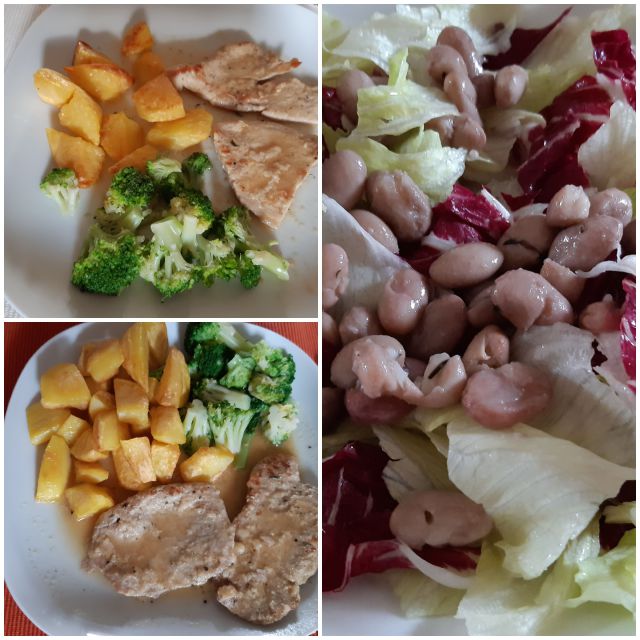 Včeraj naravni zrezki, pečen krompir, brokoli, solata