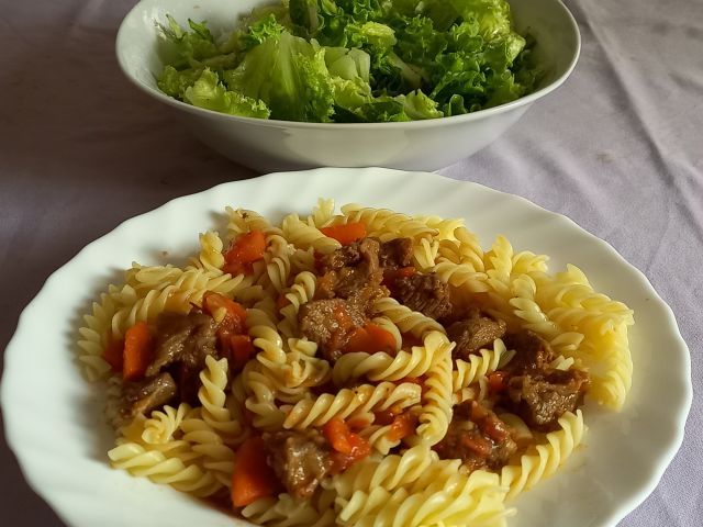 Goveji golaž na svedrčkih; zelena solata