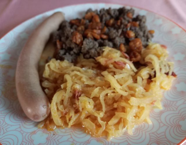 Kisla repa, ajdovi žganci z ocvirki, hrenovka