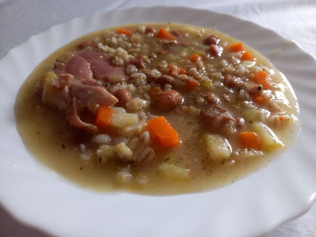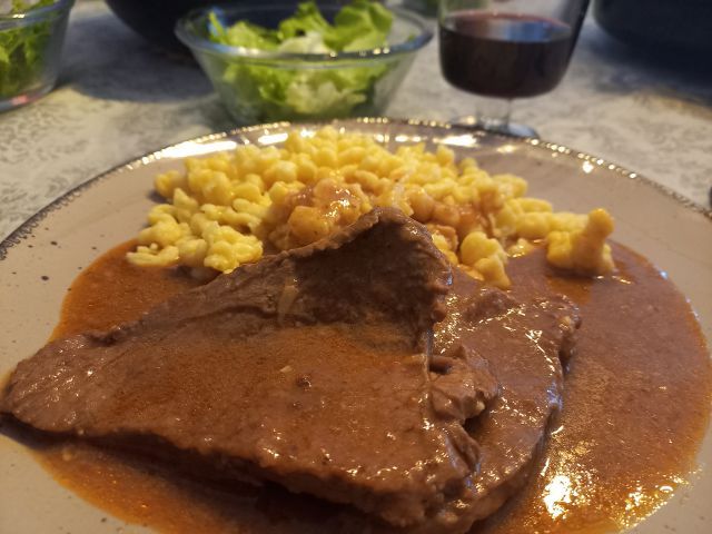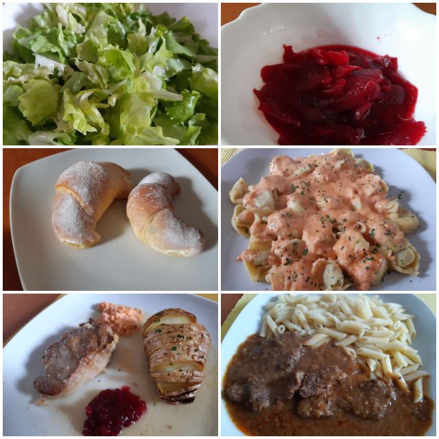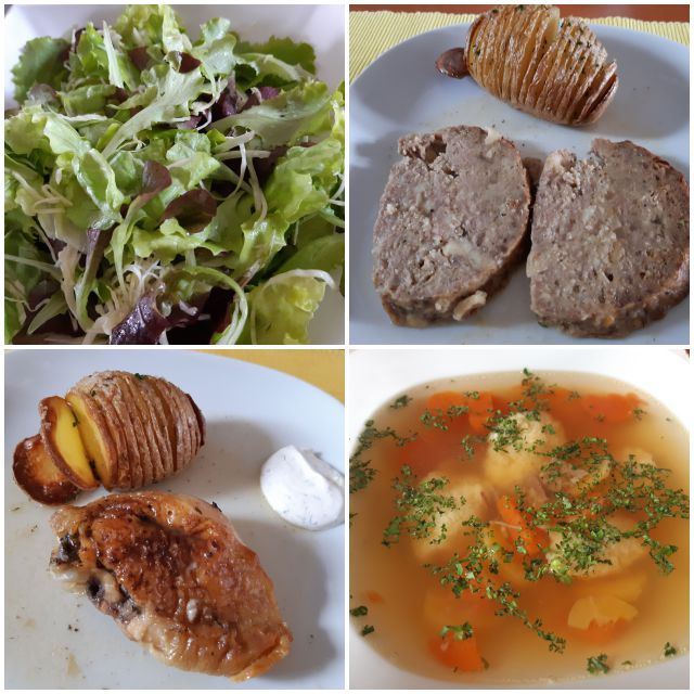 Midva sva imela govejo juho, renstan krompir, pečenko, kose piščanca, solato