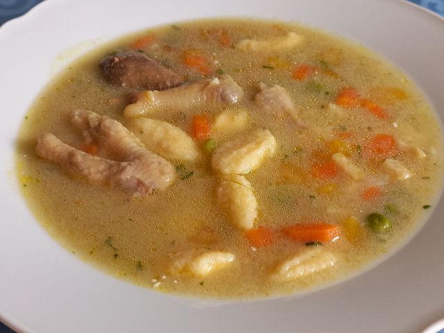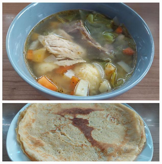 Piščančja obara z želodčki in palačinke z nutelo/marmelado: