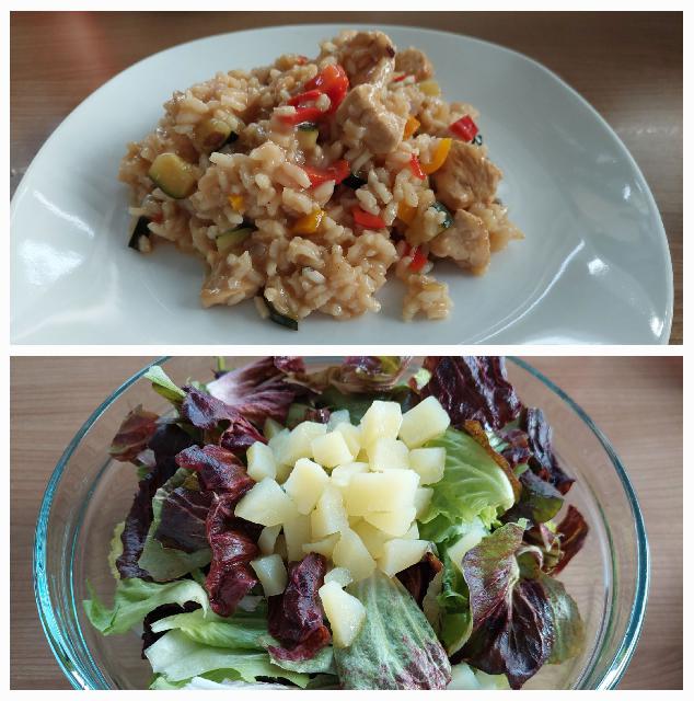 Piščančja rižota z zelenjavo, mešana solata s krompirjem: