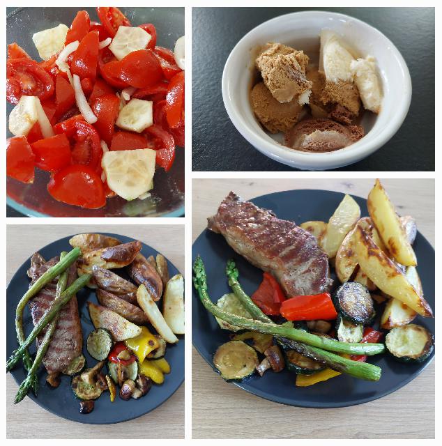 Paprike, bučke, šampinjoni in šparglji samo hitro popečeni, pečen krompir, rosbif medium, paradižnikova solata s kumaro, sladoled, sledi kava in sprehod ![]()