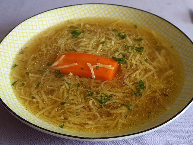 kostna juha iz zaloge z ribano kašo