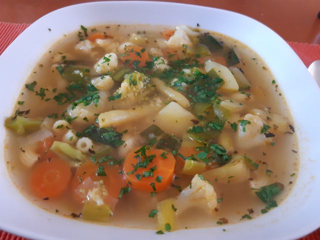 Danes: goveja juha z rezanci, piščančja rižota, zeljnata solata s fižolom, motovilec