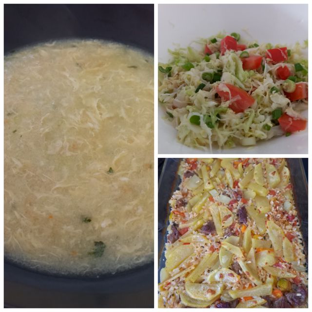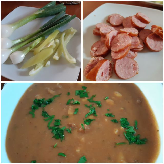 Včeraj sva imela s sinom preostanek hrane iz kitajske restavracije, mož fižolovo juho kranjska klobaso, kruh, domačo mlado čebulo