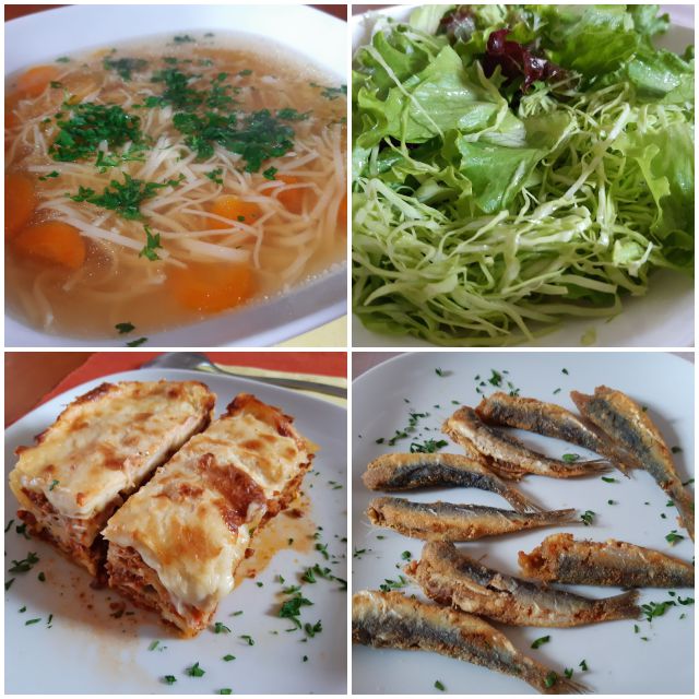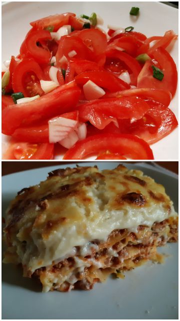 Od včeraj sva sama ( sin uživa na morju) in goveja juha z rezanci, preostanek lazanje za moža, zame sardele, solata