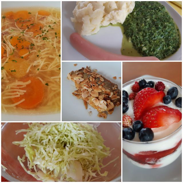 V četrtek goveja juha, špinača, pire krompir, hrenovke, zame file postrvi z mandlji, zeljna solata, sladica v kozarčkih