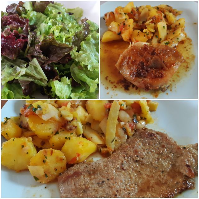 Danes stročji fižol s krompirjem, zrezek in kos piščanca, solata z vrta