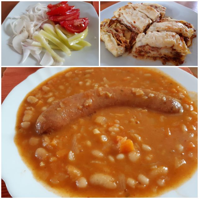 Danes lazanja iz zaloge, pasulj s klobaso.