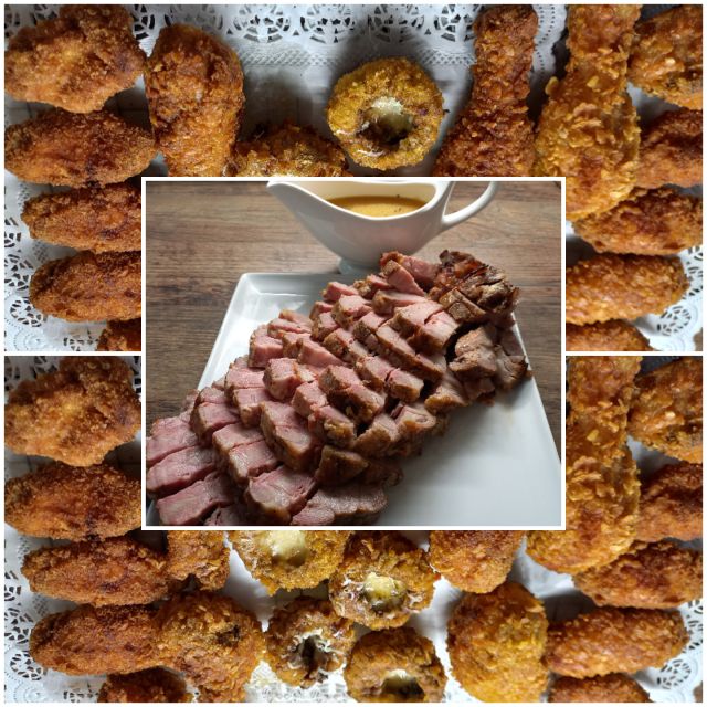 Nafilana vratovina; paniran piščanec, nadevana šampinjoni/panirani