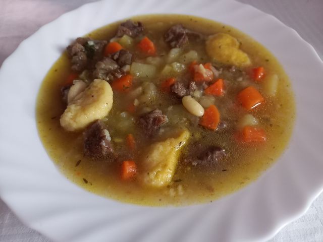 Enolončnica (govedina in mešanica zelenjave) z žličniki.