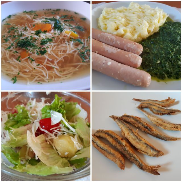 Danes goveja juha iz zaloge, špinača, pire krompir, hrenovke, zame sardoni, solata
