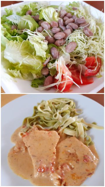 Včeraj zrezki v omaki, rezanci, mešana solata