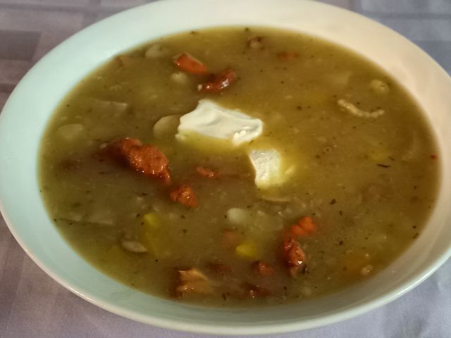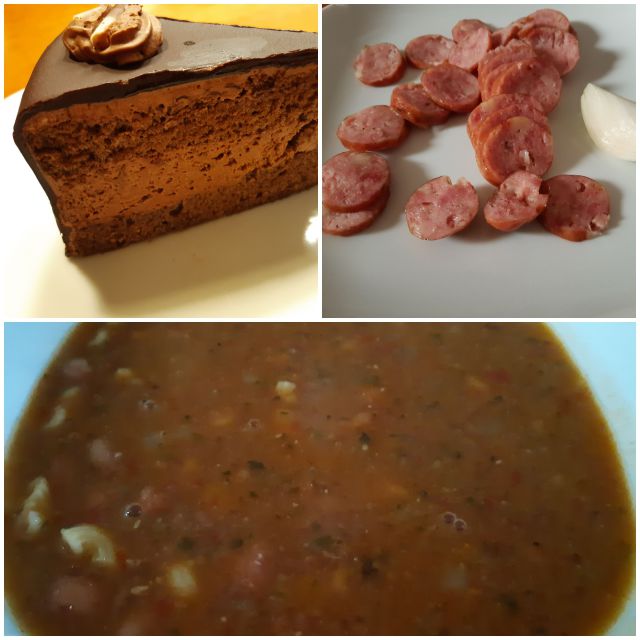 Včeraj fižolova juha, kranjska klobasa, kruh in tortica za slavljenca.