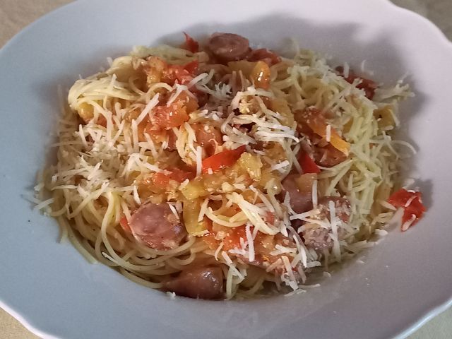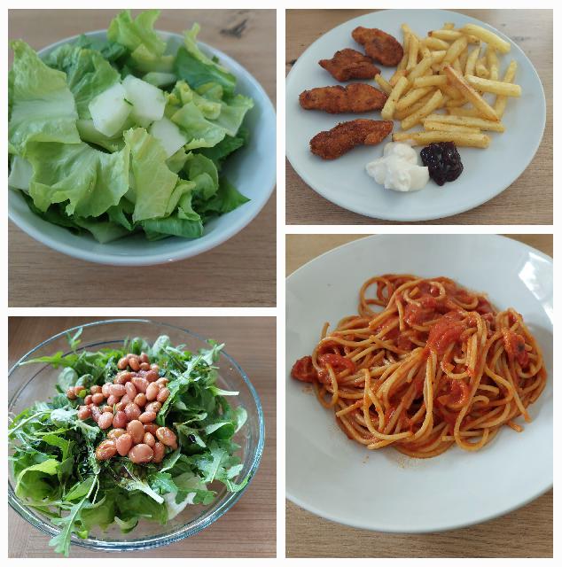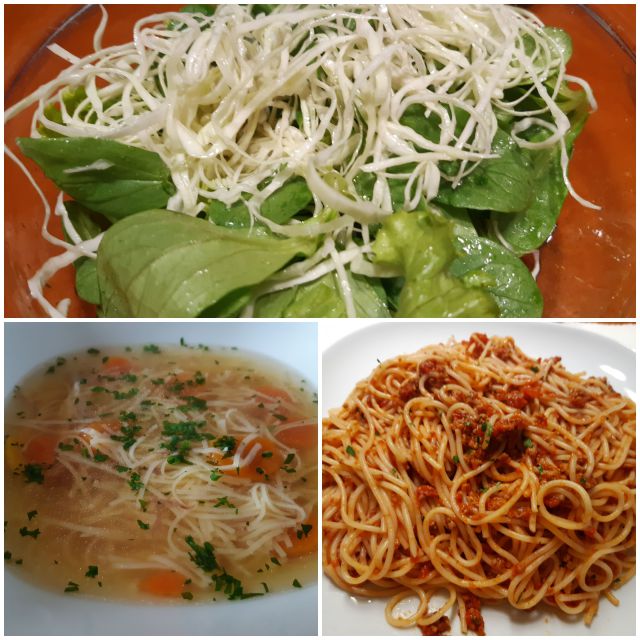 Včeraj goveja juha z rezanci, špageti bolognese, motovilec in zeljna solata