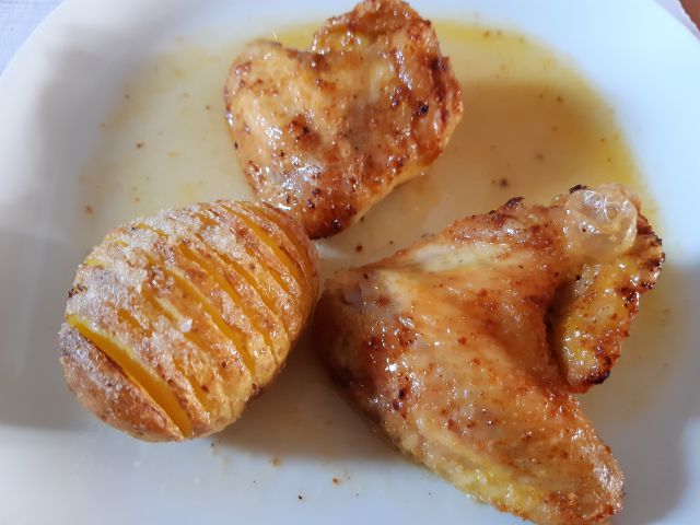 Danes sem sama - pečeni perutki, krompir, motovilec s fižolom