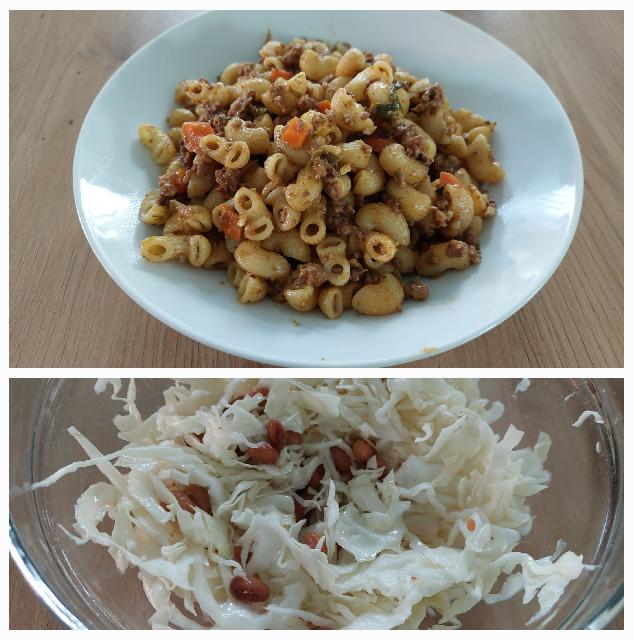 Makaronflajš, zeljnata solata s fižolom ![]()