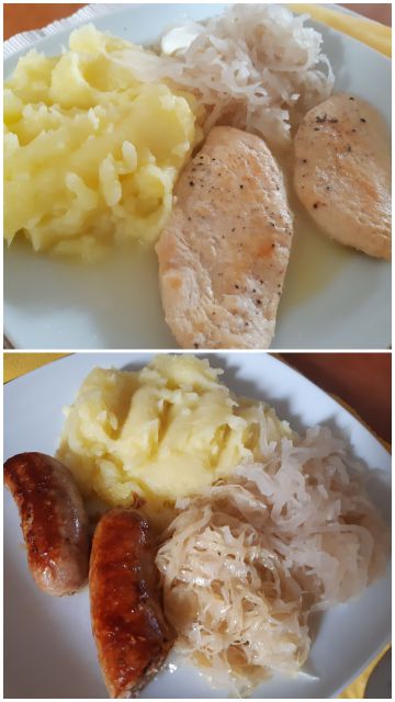 Včeraj kisla repa, kislo zelje, pire krompir, pečenica, piščančji file
