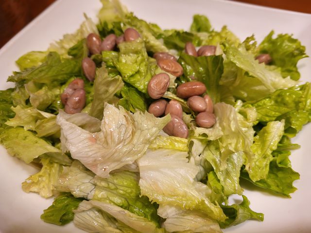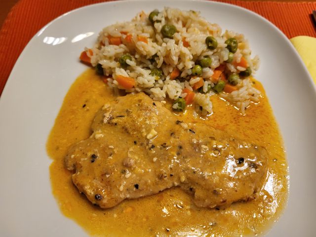 Včeraj zrezki v omaki, zelenjavni riž, solata s fižolom
