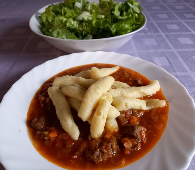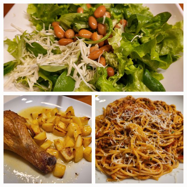 Danes sva šla z možem hodit, kosilo na hitro, špageti z bolognese omako iz zaloge, zame kračka, krompir, solata.