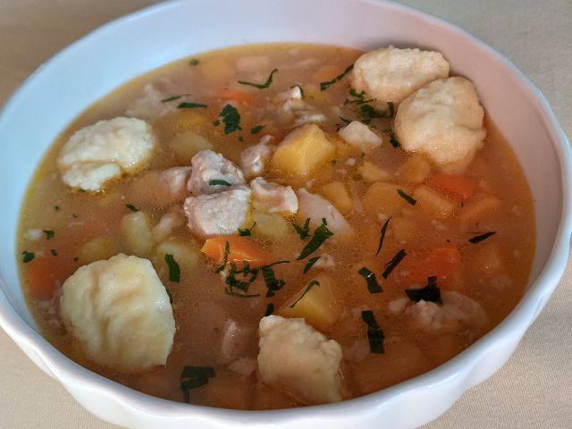 skutni štruklji, zabeljeni z drobtinicami na maslu