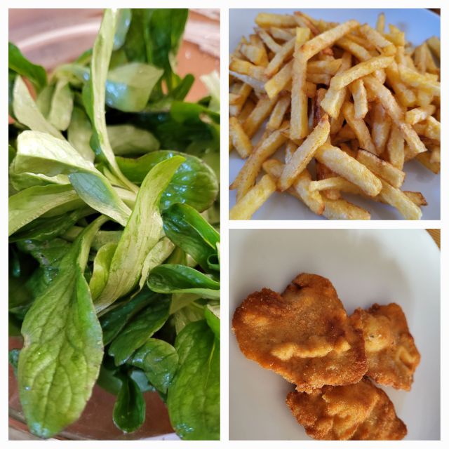 Včeraj smo gostili sorodnike in na željo najmlajše spet pohančki, pomfri in solate.