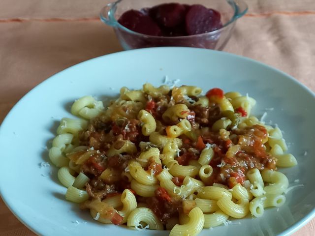 Danes: zelenjavna omaka-rdeča paprika,čebula,česen,paradižnik,
