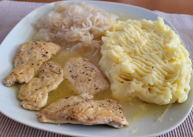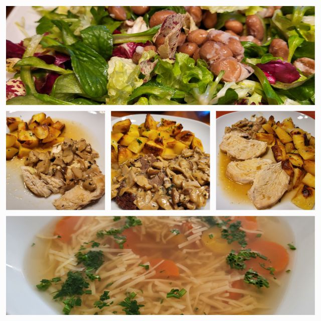 Pri nas včeraj juha z jetrnimi knedlčki, kremenatli in fižolova solata.
