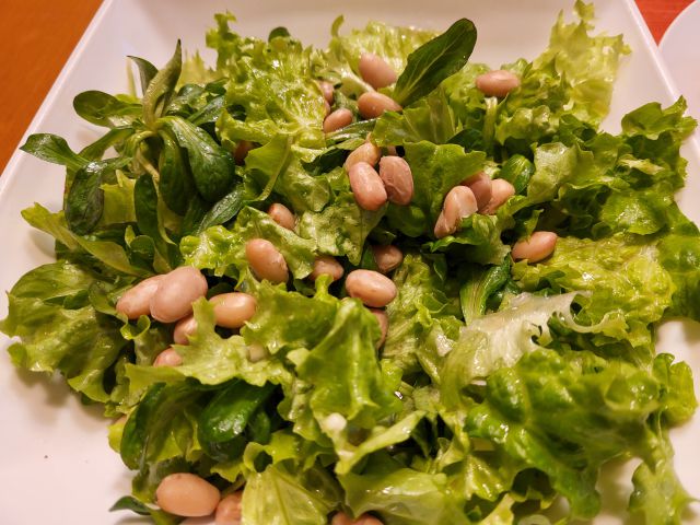 Nedelja: fižolova juha, pećena vratovina, pražen krompir, hren z jajčko, enivija in radič s krompirjem.
