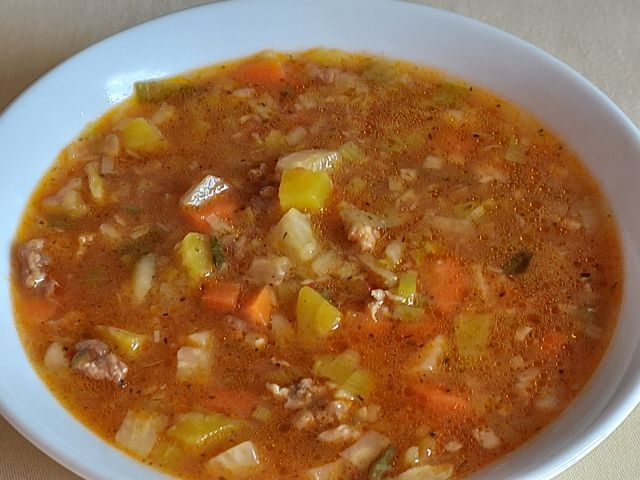 Danes zame goveja juha, ker sem obležala, moja dva sta šla jest ven.