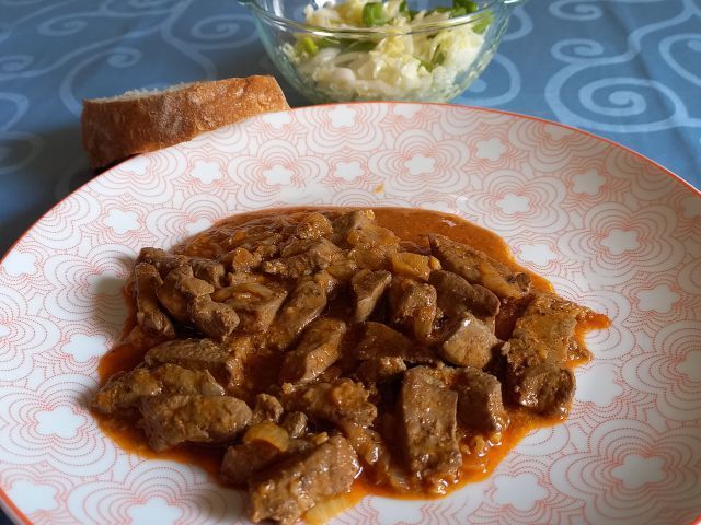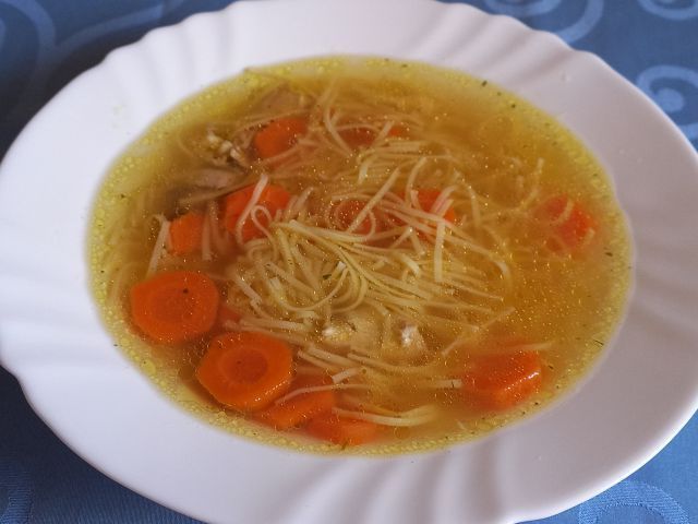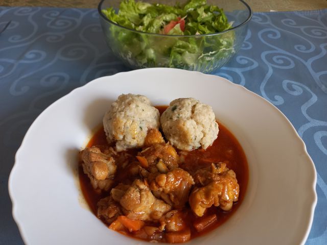 Goveje-piščančja juhica; piščančji paprikaš, kruhovi cmoki; mešana solata