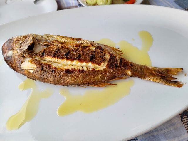 Danes zobatec na žaru, blitva s krompirjem, mešana solata.