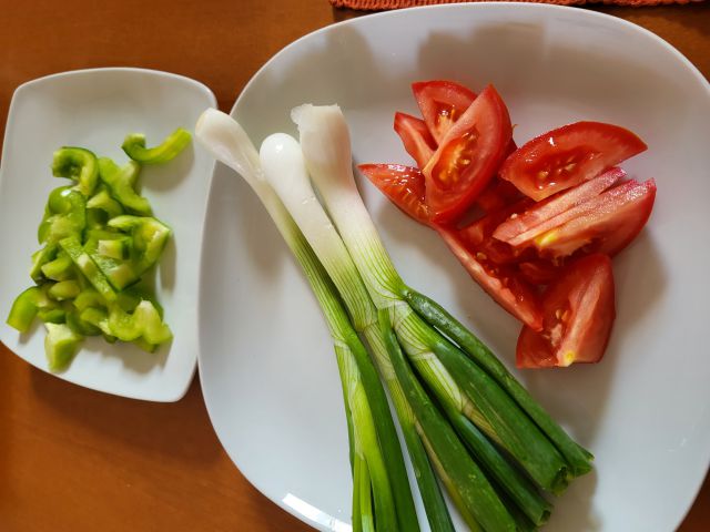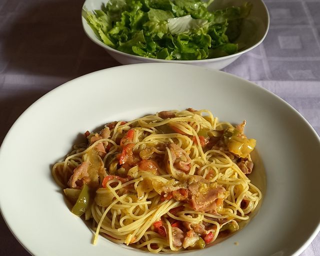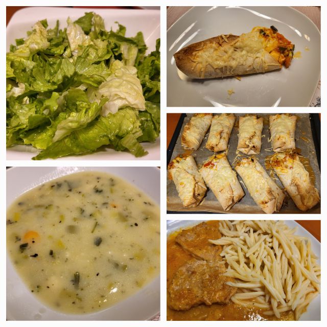 Včeraj preostanek hrane za naju s sinom, solata, za moža mesna omaka, testenine