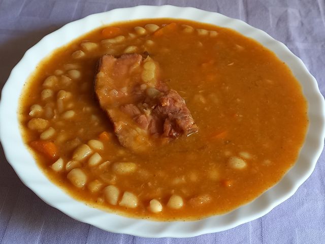 Včeraj pasulj iz zaloge, kruh in zelenjava.