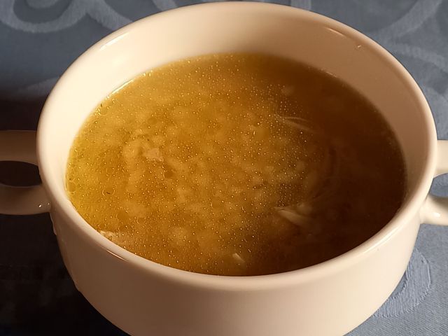 Goveja juhica (iz zaloge); sv.krmenadl v vinski omaki, rizi-bizi; zeljnata solata