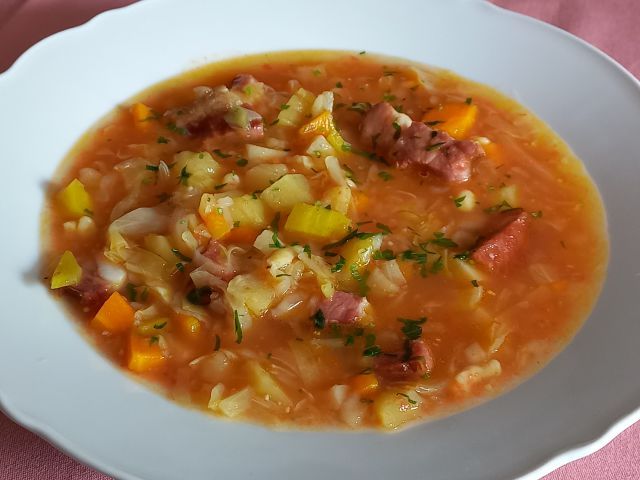 Enolončnica s sladkim zeljem, palačinke, sadje