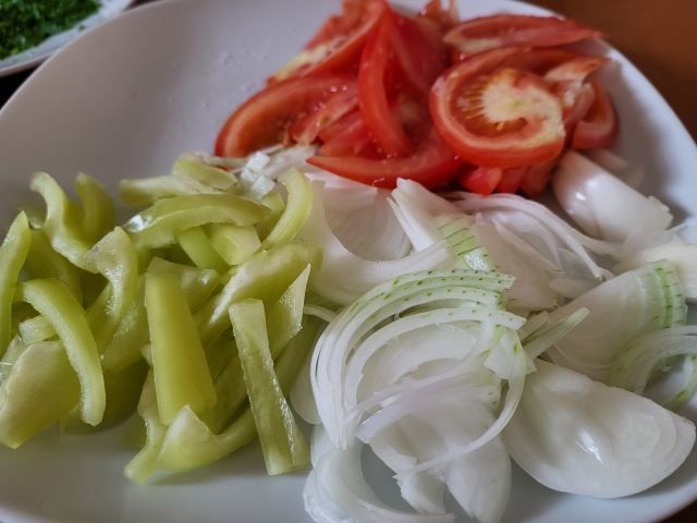 Danes polpetki z mletim mesom in rižem, poleg pa na pari kuhana zelenjava.