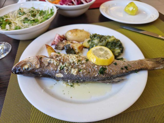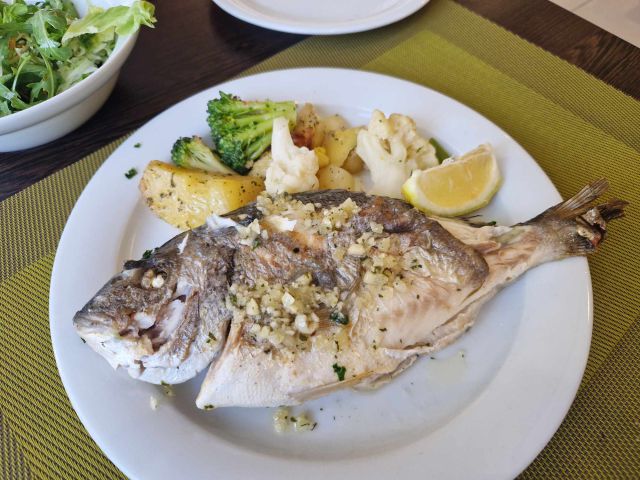 Mi smo v hotelu in čez dan nekaj malega prigriznemo, saj nas čaka večerja. Hotelsko hrano nerada slikam. Je pa zelo okusna. Sem v ponedeljek jedla odlično hobotnico s krompirjem. Včeraj sem brancina na žaru. Slikal je sin😃... Pozdravček![]()