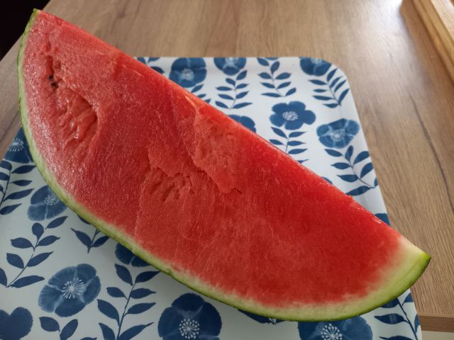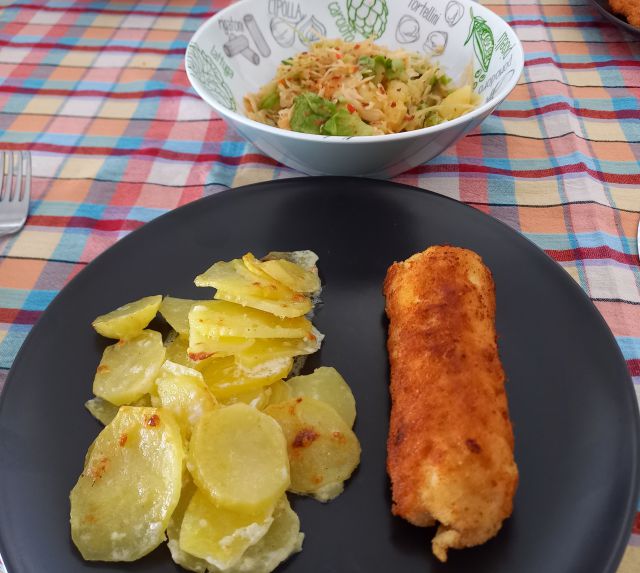 Cordon blue; pečen krompir, posut z grana padano in smetano; zeljnata solata (malček preveč slana); lubenica (zame), ostali grozdje in nektarine