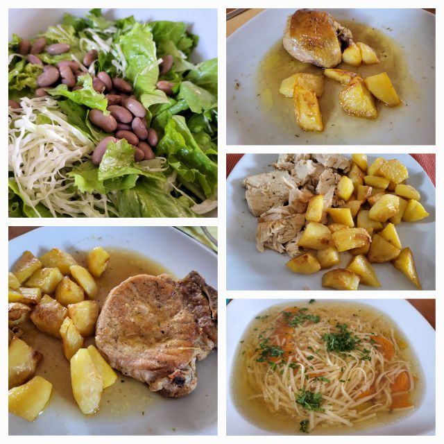 Nedelja: kurja juha z rezanci, svinjski paprikaš, njoki, mešana solata iz vrta, kava