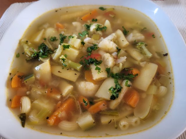 26.8 zelenjavna juha, polenta, kruh, skutin zavitek