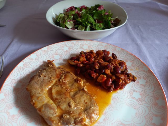 Goveja juhica (od včeraj); pečena vratovina v vinski omaki, ponesrečeni prebranec; radič s krompirjem
